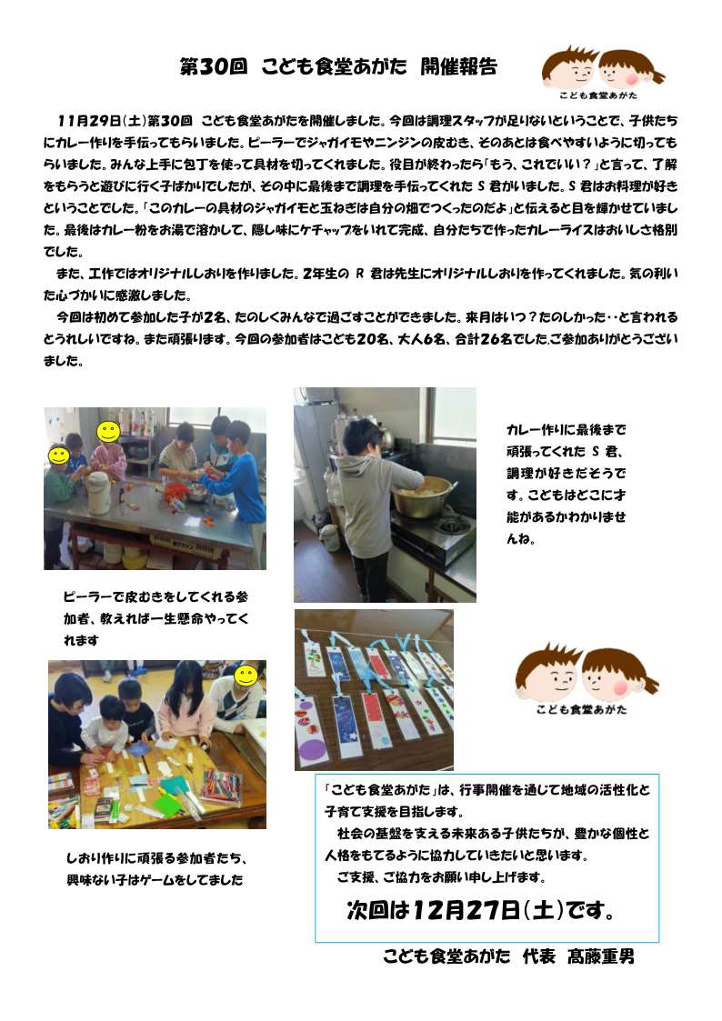 「第30回こども食堂あがた」開催の報告と「第31回…