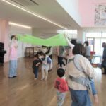4月8日(月)に今年度初めてのママ~ずリズム遊びが行われ10組の親子が参加しました。パネルシアターや体操、ふれあいあそびなど盛りだくさんのプログラムでした。童謡“ちょうちょ”に合わせてペープサートのちょうちょが登場すると、釘付けで見ていましたよ。春を感じる内容にほっこりした気分になりました。