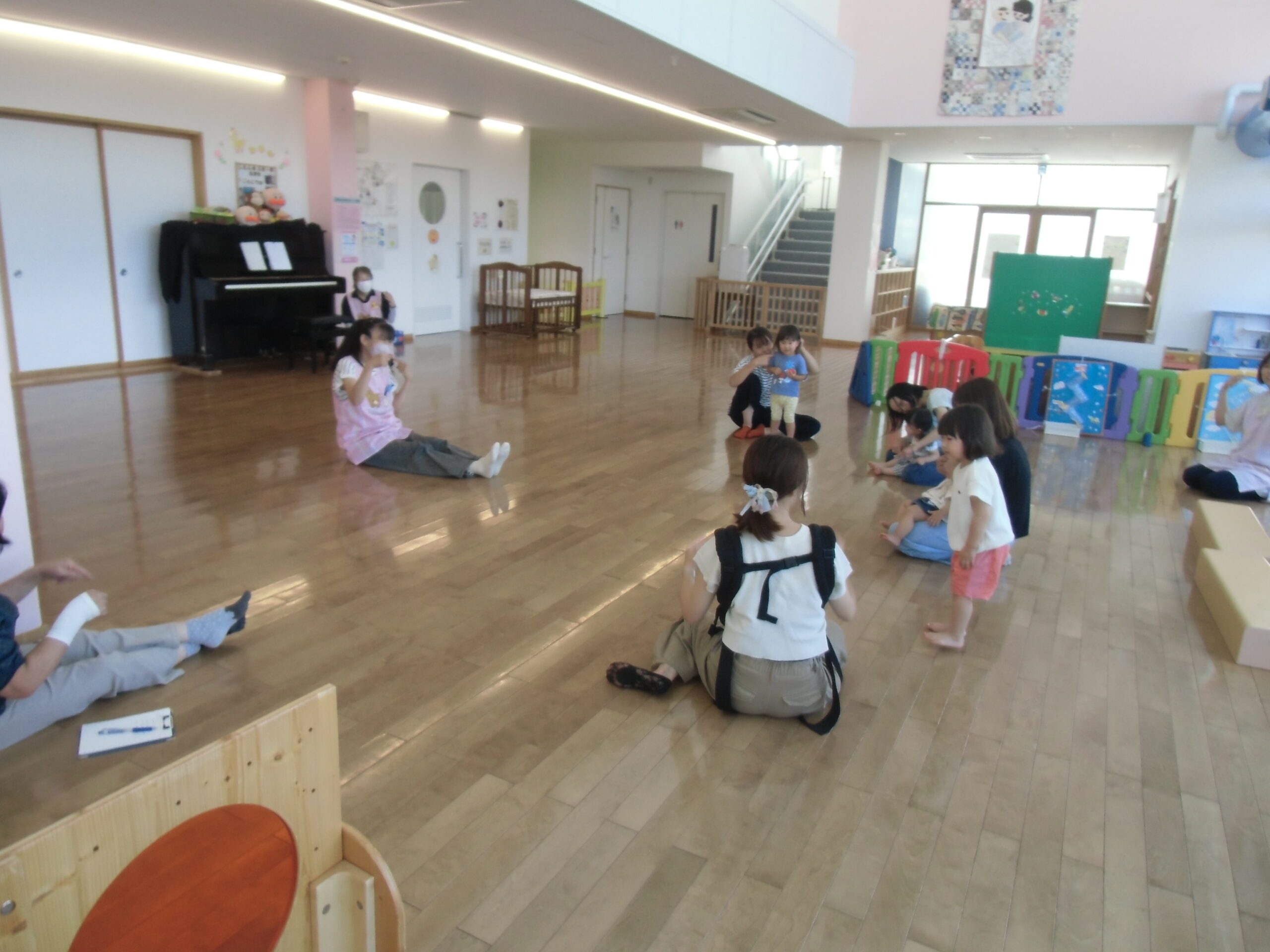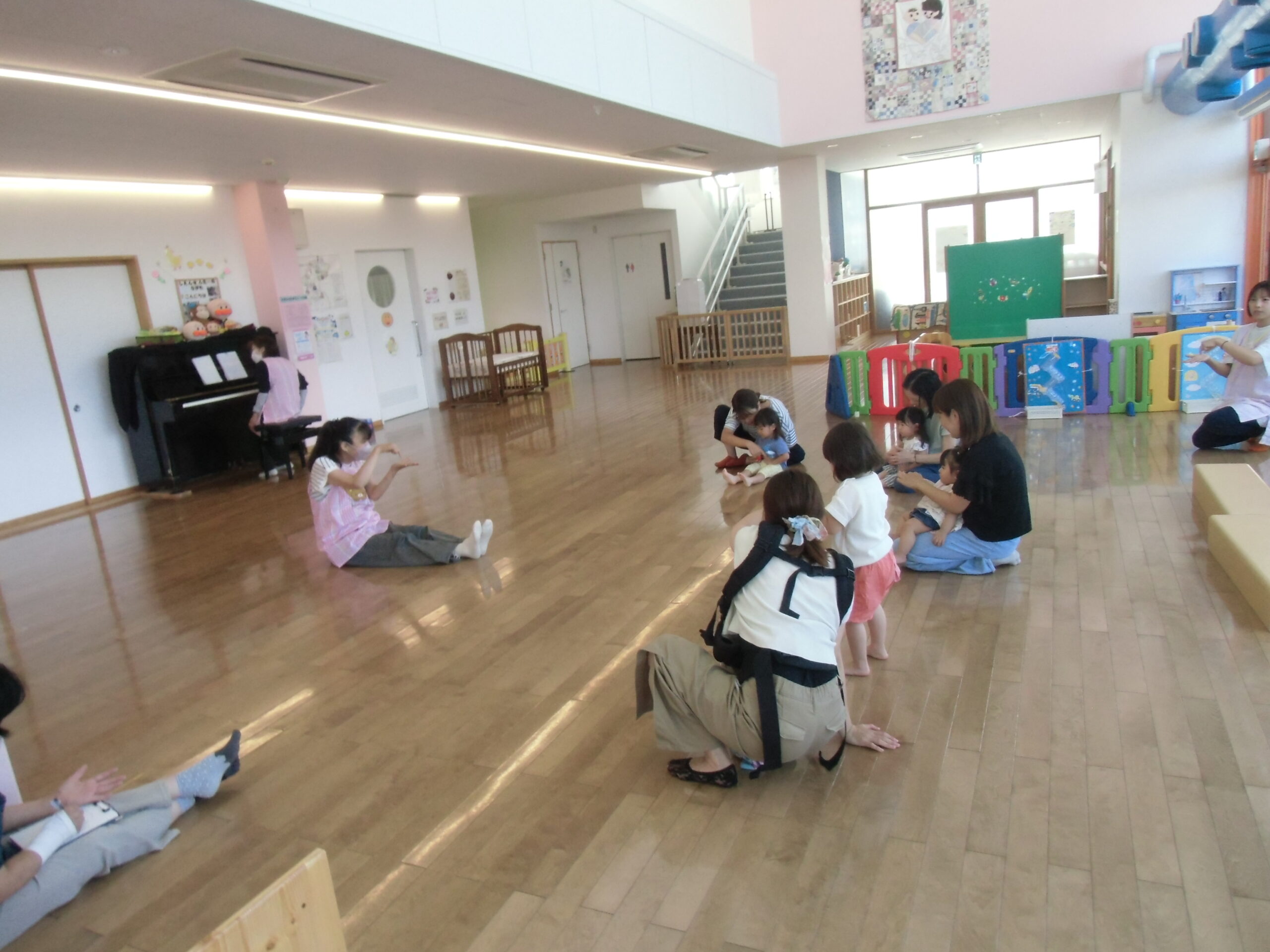 7月14日(月)ママ~ずのリズム遊びが行われ、5組の親子が参加しました!