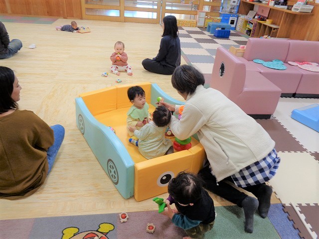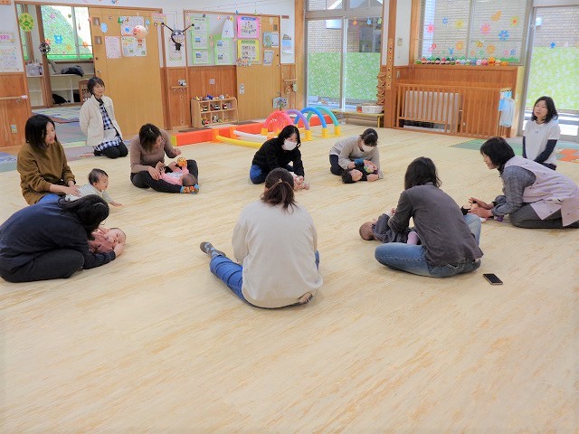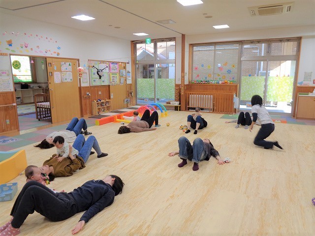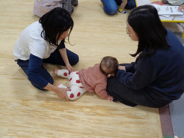 最初にふれあい遊びをしてママとのスキンシップの時間をとってからスタートしました。