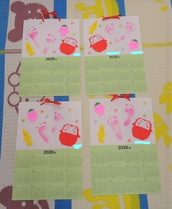 後半は来年のカレンダー作りをしました。子どもたちが大好きな「だるまさん」シリーズ