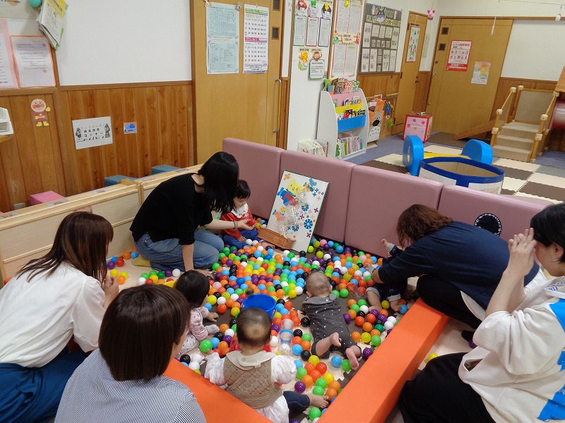 風船をふくらませてもらいポンポンと風船遊びもしました。ママたちは子どもたちのあどけない表情に癒されていましたよ。
