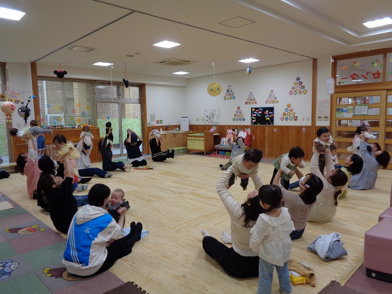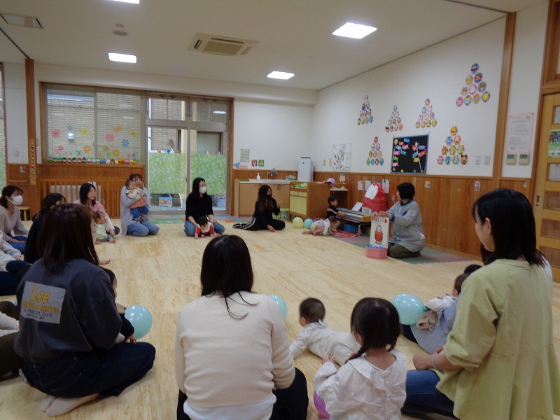 最後は「パンパンパン屋さん~」の手遊びと大型絵本「だるまさんが」を見て終了となりました。