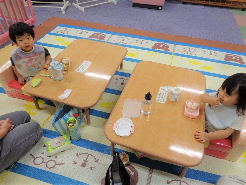 アンパンマンのイスは子どもたちに大人気。昼食の時間になると手洗いを済ませた子どもは、イスに座って「いただきます♪」 アンパンマンのイスの効果があるのか…ちゃんと座って食べていますよ♪