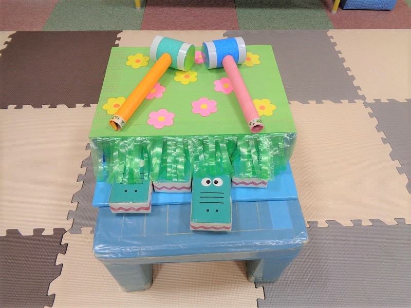 スタッフが、あれこれと試行錯誤しながら完成させた『ワニたたき』。