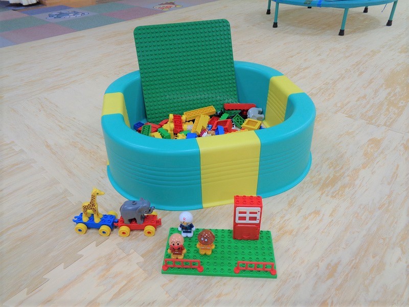 今月は、『サークル(中でボール遊びができます)』『ぞうさん滑り台』『トランポリン』『レゴブロック』を設置しました。おもちゃコーナーも入れ替えてあります。