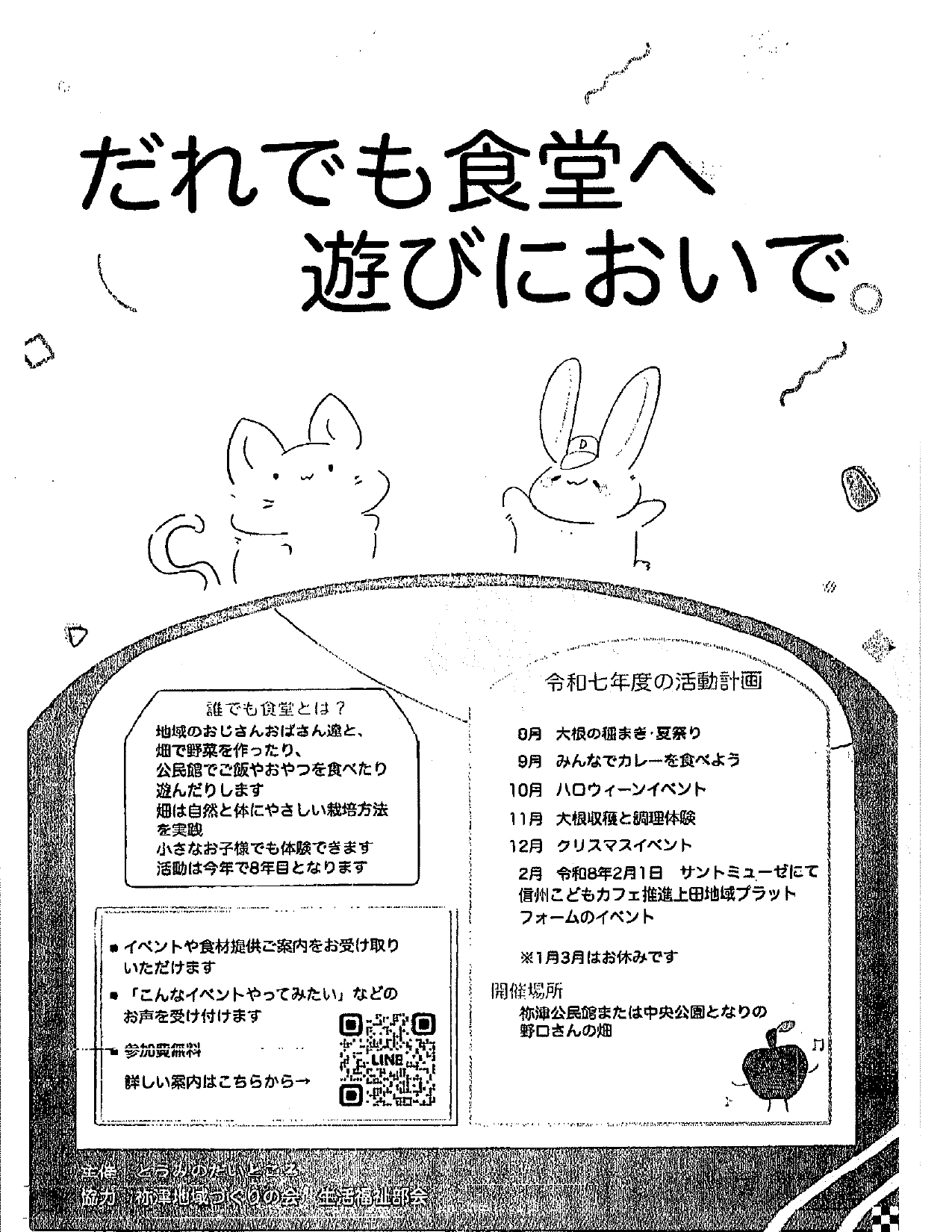 ※雨天の場合は、10:00に中央公民館にお集まりいただき、調理体験をします。