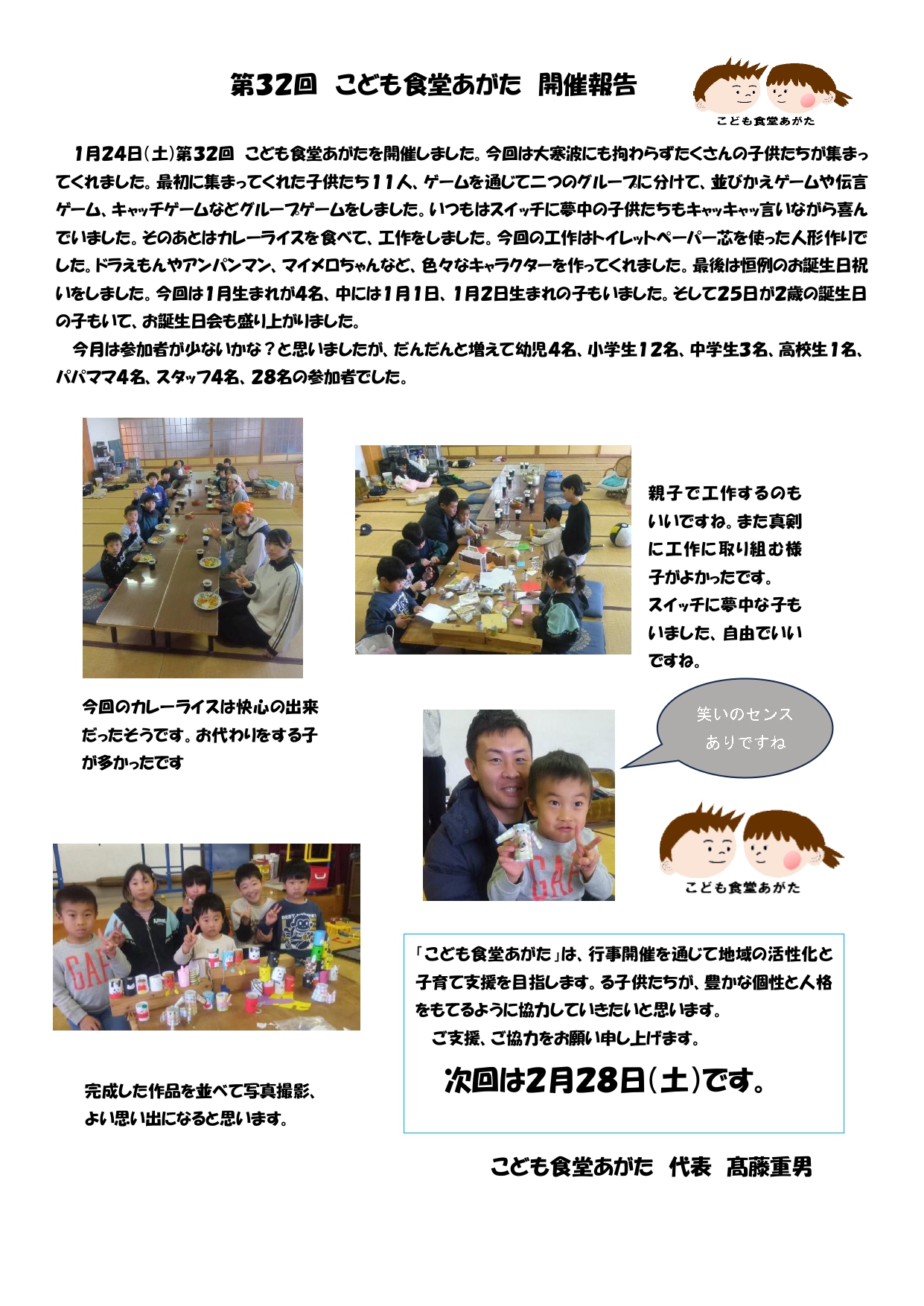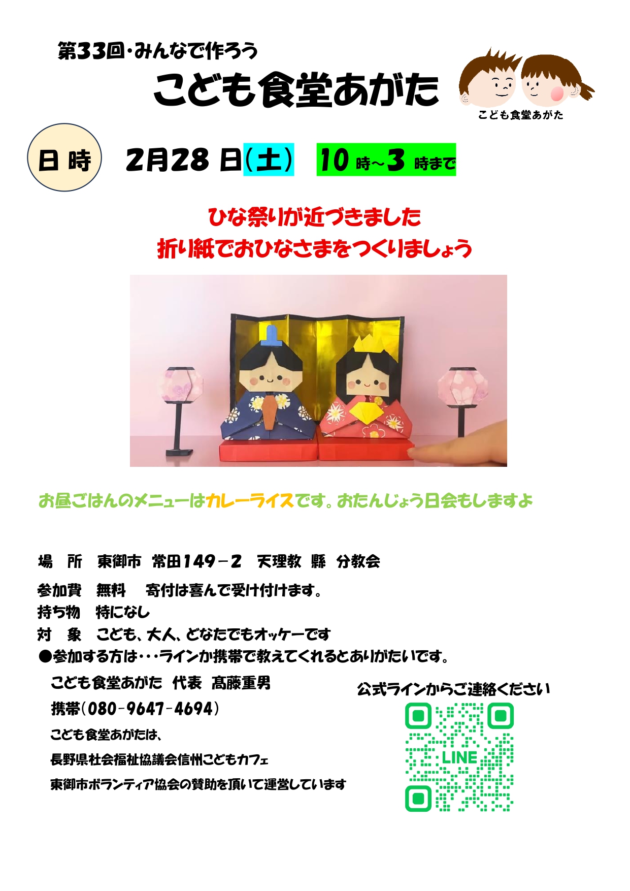 ♦お問い合わせ先♦ 子ども食堂あがた代表 高藤重男 ☎080-9647-4694